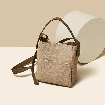 金狐狸二层牛皮女包2023年新款夏季包包水桶包女士手提包