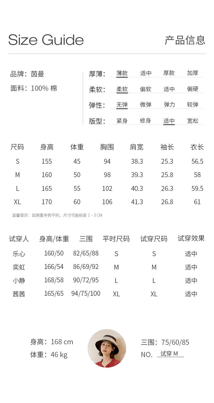详细材质信息: 100%棉